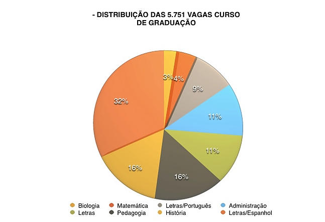 Foram ofertadas 185 vagas para os cursos de Graduação: Licenciatura Plena em História, Licenciatura Plena em Letras/Espanhol, Licenciatura Plena em Letras/Inglês e Licenciatura Plena em Matemática.